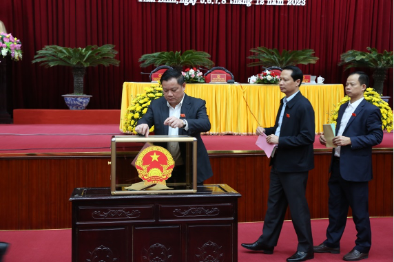 | Ông Nguyễn Tiến Thành, Phó Bí thư thường trực Tỉnh ủy, Chủ tịch HĐND tỉnh Thái Bình bỏ phiếu |