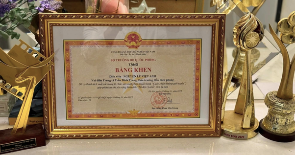 Mới đây, trên trang cá nhân, diễn viên Việt Anh, Thu Quỳnh chia sẻ hình ảnh tấm bằng khen của Bộ trưởng Bộ Quốc phòng vì những đóng góp cho vai diễn người lính biên phòng trong bộ phim "Cuộc chiến không giới tuyến".