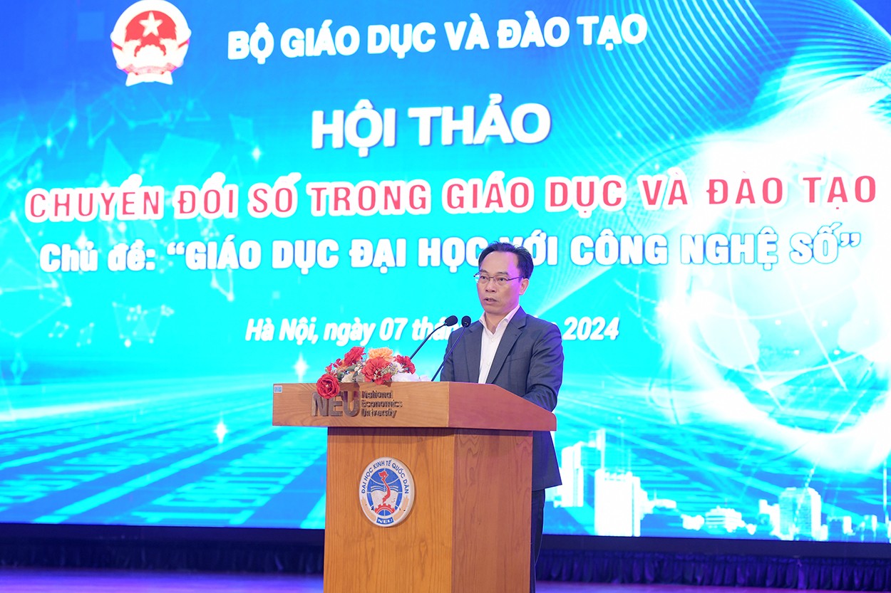 | Thứ trưởng Hoàng Minh Sơn phát biểu tại hội thảo chuyển đổi số trong giáo dục và đào tạo chủ đề “Giáo dục đại học với công nghệ số”. Ảnh: Bộ Giáo dục và Đào tạo |