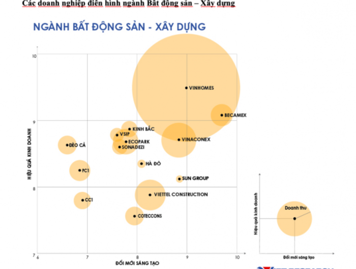 Theo đó, ngày 24/6 tới đây Viet Research cũng phối hợp với Báo Đầu tư công bố Top 10 Doanh nghiệp Đổi mới, Sáng tạo và Kinh doanh hiệu quả trong ngành bất động sản - xây dựng chia thành các nhóm khác nhau, bao gồm: Nhóm nhà phát triển bất động sản; Nhóm bất động sản khu công nghiệp; Nhóm tổng thầu xây dựng và nhóm nhà phát triển hạ tầng và xây lắp điện, viễn thông.
