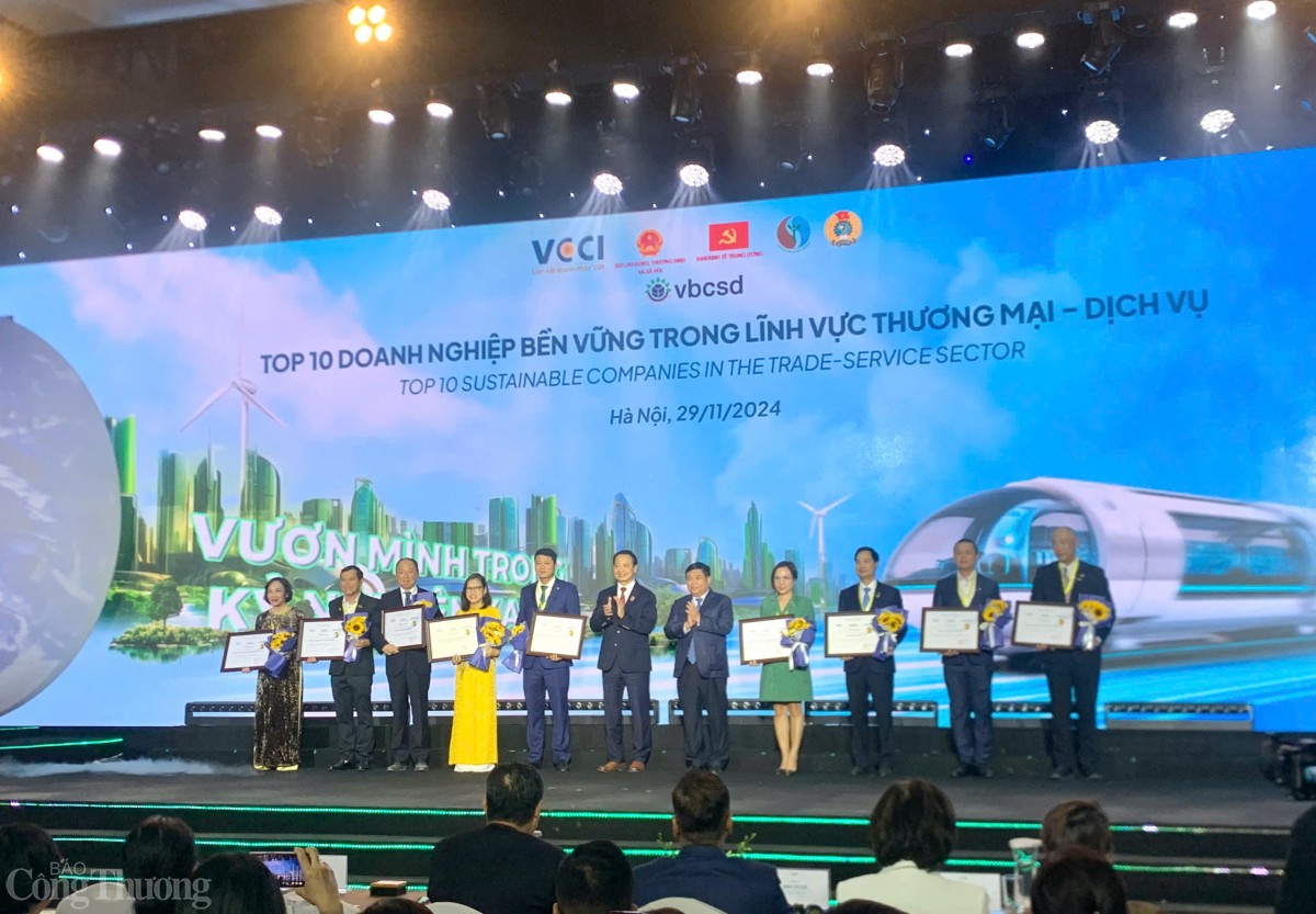 | Ban Tổ chức công bố Top 10 Doanh nghiệp bền vững trong lĩnh vực thương mại - dịch vụ. Ảnh: NH |