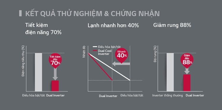 Bên cạnh đó, các mẫu điều hòa Inverter của LG, ngoài thiết kế nổi bật, còn có tích hợp công nghệ Dual Inverter giúp làm lạnh nhanh hơn tới 40%. Đặc biệt, thế hệ điều hòa Inverter mới có thiết kế cánh quạt xiên lớn hơn 25% và thiết kế miệng gió tối ưu giúp luồng gió thổi mạnh hơn, có thể thổi xa tới 9m trong một số điều kiện.