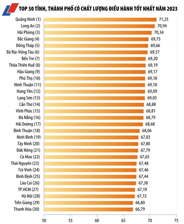 Trước đó, PCI năm 2023 được công bố vào tháng 4/2024 đã ghi nhận Top 30 tỉnh, thành phố có chất lượng điều hành tốt nhất, trong đó Top 5 gồm các địa phương: Quảng Ninh, Long An, Hải Phòng, Bắc Giang, Đồng Tháp.