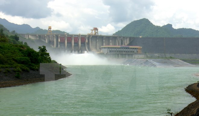 | Hồ thủy điện Tuyên Quang mở một cửa xả đáy để đảm bảo an toàn cho hồ chứa. |