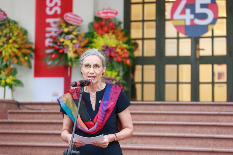 | Bà Nienke Trooste - Đại sứ Hà Lan tại Việt Nam phát biểu tại buổi lễ khai mạc triển lãm |