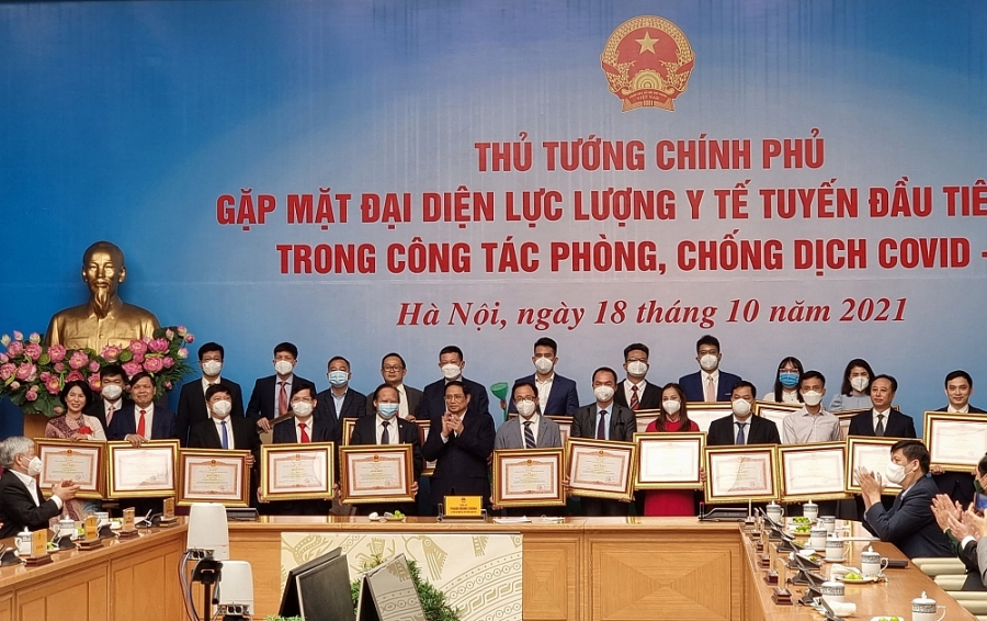 Phát biểu tại buổi gặp mặt biểu dương, tôn vinh các thầy thuốc tiêu biểu trong công tác phòng, chống dịch Covid-19 lần này, Thủ tướng Chính phủ Phạm Minh Chính nhấn mạnh: Trải qua 4 đợt dịch, ngành y tế đã khẩn trương, tham mưu kịp thời nhiều giải pháp, huy động và chi viện mọi nguồn lực chống dịch, đặc biệt là đợt dịch lần thứ tư. Ngành y tế đã, đang khẳng định được tâm thế, vị trí, vai trò, trách nhiệm của mình trước tính mệnh và sức khoẻ của người dân. Người thầy thuốc đã khẳng định, phát huy được các đức tính “Nhân, Trí, Dũng” trong cuộc chiến phòng, chống dịch Covid-19.