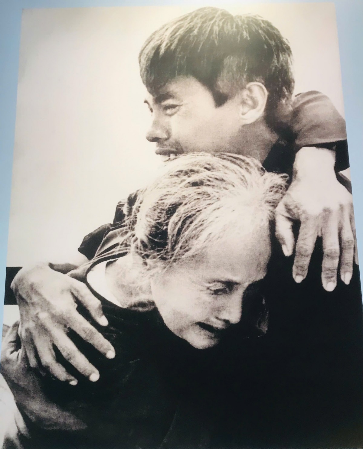 | "Mẹ gặp con" của tác giả Lâm Hồng Long. Tác phẩm ghi lại khoảng khắc anh Lê Văn Thức - tử tù Côn Đảo gặp lại mẹ là bà Trần Thị Bính ra đón lúc 9 giờ, 45 phút ngày 5/5/1975 tại Rạch Dừa, Vũng Tàu. Ảnh: Hoa Quỳnh |