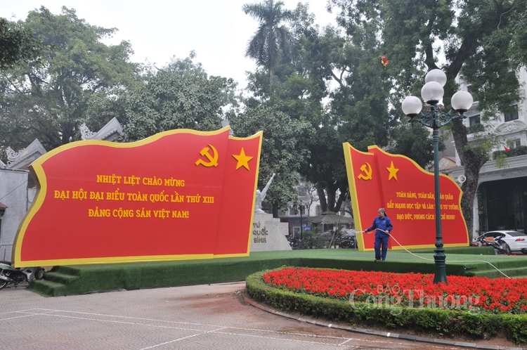 | Công tác trang trí đang được khẩn trương tiến hành tại Trung tâm hội nghị quốc gia |