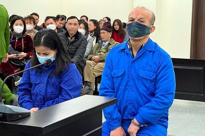 | Bị cáo Phùng Đức Thuấn và Đỗ Thị Hương tại tòa. |
