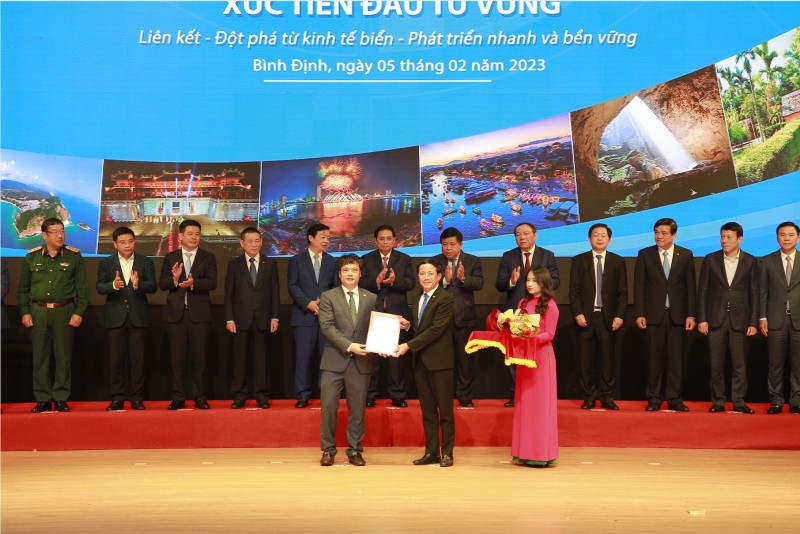 | Ông Phạm Anh Tuấn - Chủ tịch UBND tỉnh Bình Định trao Quyết định chủ trương đầu tư cho nhà đầu tư |
