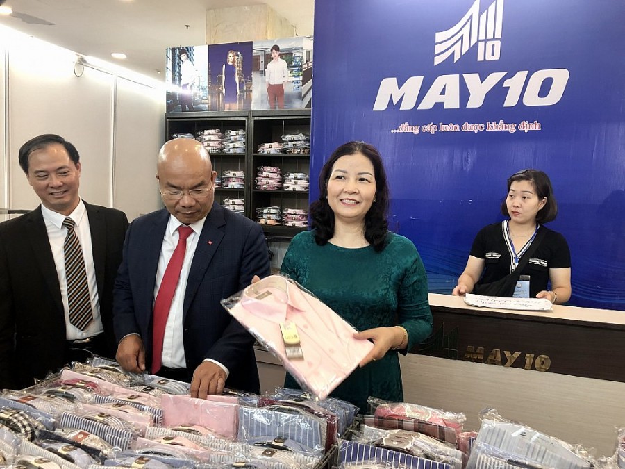 | Sản phẩm của Tổng Công ty May 10 với giá cả phải chăng cũng rất được ưa chuộng tại hội chợ |