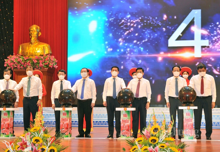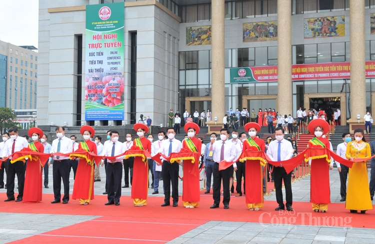 | Trong khuôn khổ hội nghị, tại điểm cầu tỉnh Bắc Giang cũng đã diễn ra lễ công bố và trao văn bằng Chỉ dẫn địa lý vải thiều Lục Ngạn tại Nhật Bản, khai trương “Gian hàng vải thiều trên sàn Alibaba.com và các sàn thương mại điện tử” và lễ xuất hành đoàn xe vải thiều tiêu thụ tại thị trường trong nước và quốc tế. Những sự kiện quan trọng này góp phần tạo điều kiện thuận lợi cho vải thiều của tỉnh Bắc Giang được thông quan thuận lợi, đưa vải thiều tiêu thụ trên các trang thương mại điện tử và tiêu thụ vải tại các hệ thống siêu thị lớn, chợ đầu mối lớn trong nước. |