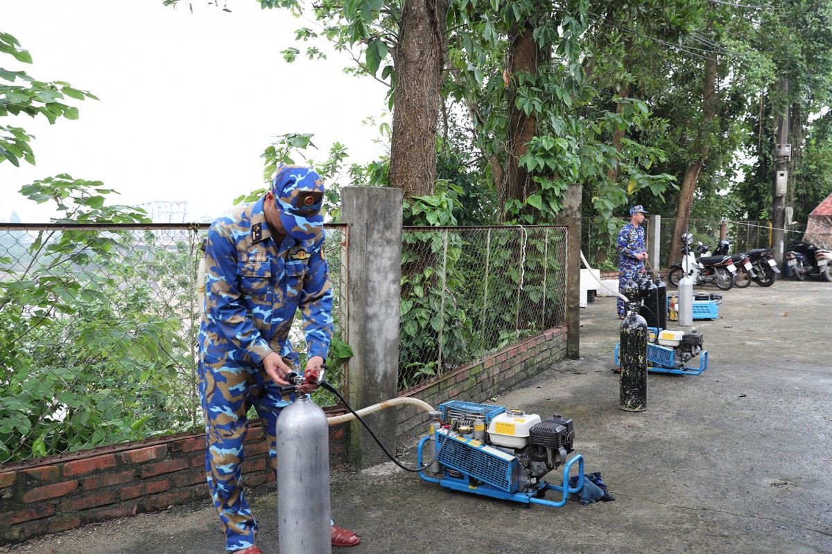 | Thợ lặn đơn vị chuẩn bị khí tài chuyên dùng (Ảnh: Vũ Hưởng) |