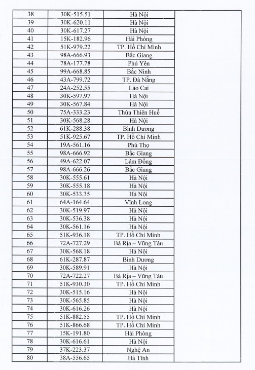 | Danh sách 400 biển số xe ô tô sẽ đấu giá ngày 4/10 |