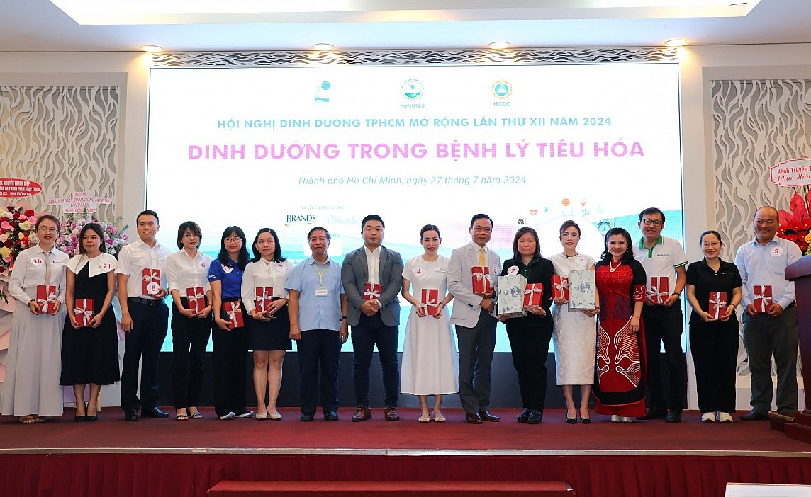 | Ban tổ chức trao quà cảm ơn các nhà tài trợ tại hội nghị dinh dưỡng mở rộng lần thứ XII TP. Hồ Chí Minh |