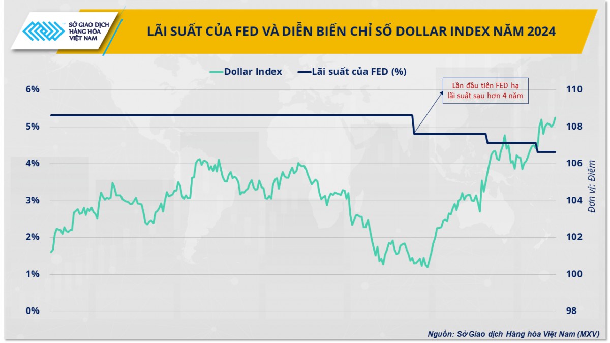 | Lãi suất của FED và diễn biến chỉ số Dollar Index năm 2024 |