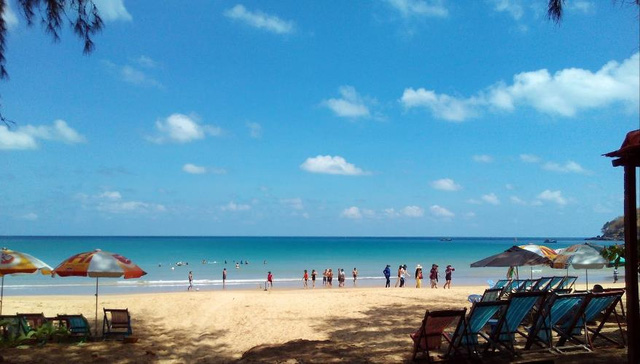 Từ bãi biển, có thể trông ra xa là những hòn đảo lân cận, cánh chim hải âu tung cánh chao lượn, thuyền ngư dân nhấp nhô mẻ cá hay các tàu du lịch chở khách ra đảo…
