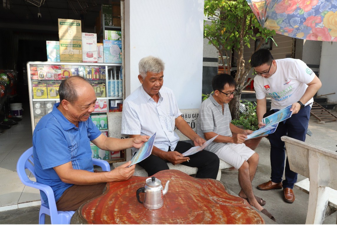 Đoàn viên EVNGENCO2 hướng dẫn người dân sử dụng điện tiết kiệm (Ảnh:CTV) |
