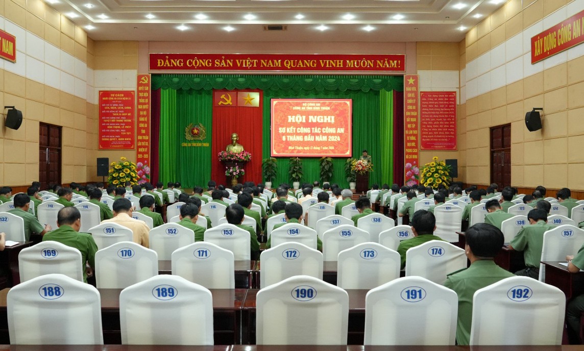 | Hội nghị sơ kết công tác Công an tỉnh Bình Thuận 6 tháng đầu năm 2024 (Ảnh: Công an tỉnh Bình Thuận). |
