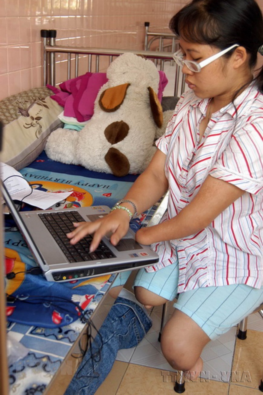 | Giờ học của em Trần Thị Hoan, học sinh khuyết tật do di chứng chất độc da cam/ dioxin được chăm sóc, nuôi dưỡng miễn phí tại Làng Hòa Bình, Từ Dũ, TP. Hồ Chí Minh năm 2008 |
