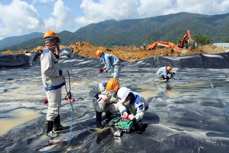 | Thực hiện lót lớp vật liệu cách ly, chống thấm để xử lý đất nhiễm chất độc dioxin tại sân bay A So, tỉnh Thừa Thiên-Huế. |