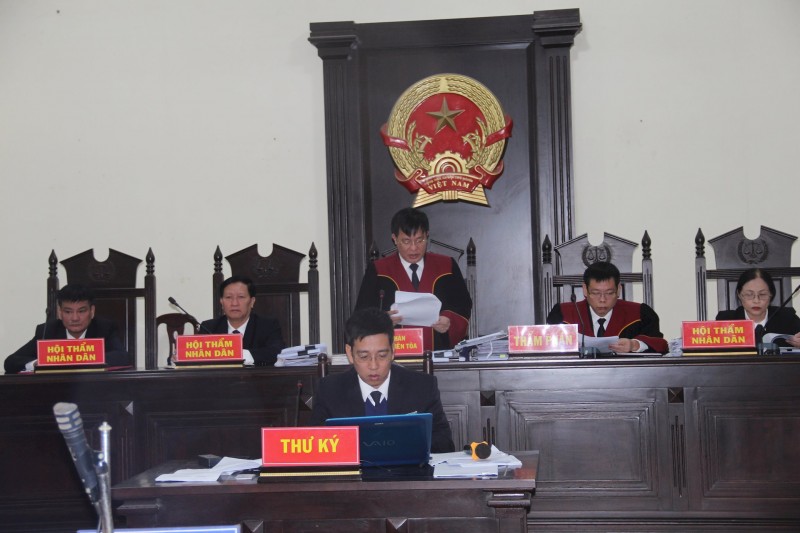 | Hội đồng xét xử sơ thẩm vụ án. Ảnh: Mạnh Hùng |