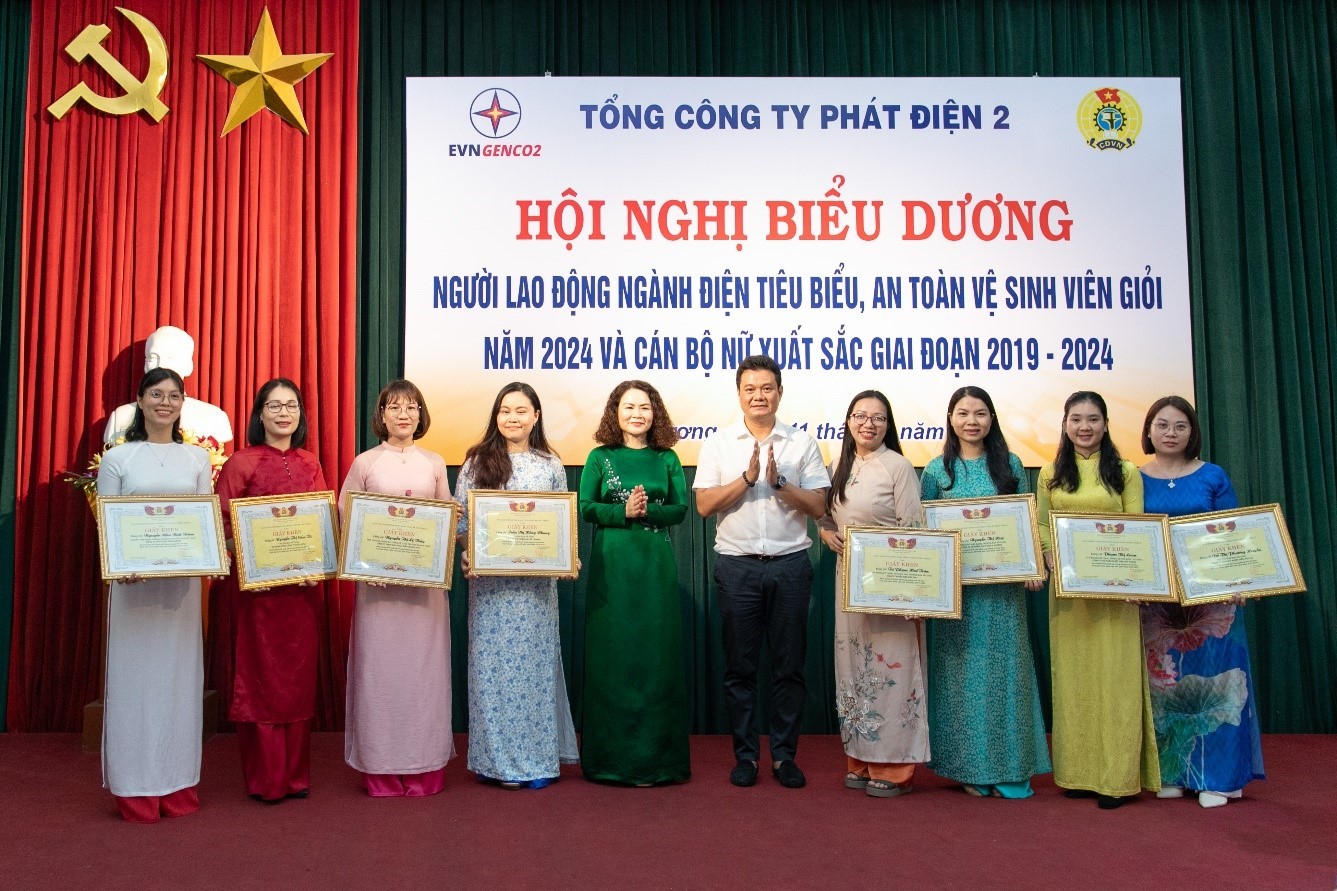 Ghi nhận những thành tích của đội ngũ đoàn viên, công nhân lao động, tại Hội nghị, Công đoàn EVNGENCO2 đã biểu dương, khen thưởng 02 tập thể và 70 cá nhân có thành tích xuất sắc tiêu biểu trong lao động sản xuất và hoạt động phong trào. Trong đó, biểu dương 25 người lao động ngành Điện tiêu biểu, 26 an toàn vệ sinh viên giỏi năm 2024, 19 cán bộ nữ công cùng 02 tập thể nữ CNVCLĐ xuất sắc tiêu biểu giai đoạn 2019 - 2024.