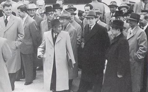 | Phó Thủ tướng Phạm Văn Đồng (áo khoác trắng, đứng giữa ảnh)-Trưởng đoàn đàm phán của Việt Nam DCCH tại Hội nghị Geneve - Ảnh tư liệu |
