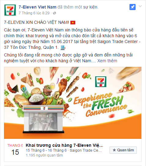 | Thông tin được công bố trên trang Facebook chính thức của 7-Eleven Việt Nam |