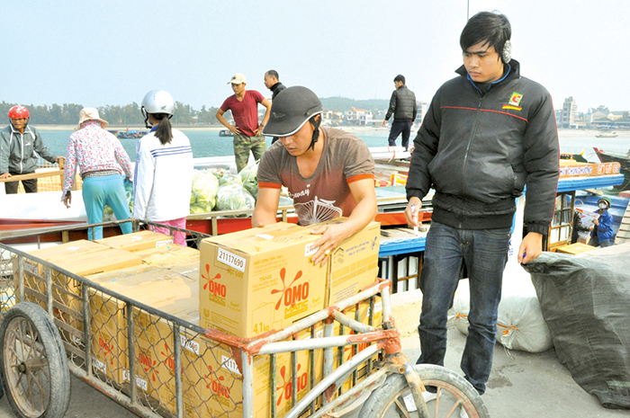 | Đưa hàng từ đất liền ra đảo Cô Tô |