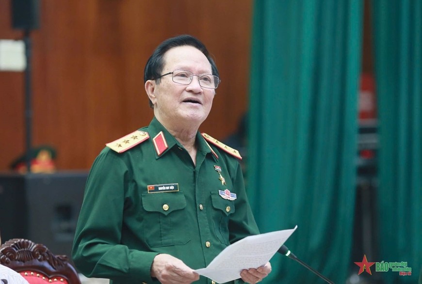 | Thượng tướng, Viện sĩ, Tiến sĩ, Anh hùng LLVT nhân dân Nguyễn Huy Hiệu, nguyên Ủy viên Trung ương Đảng, nguyên Thứ trưởng Bộ Quốc phòng, phát biểu tại tọa đàm. - Ảnh: QĐND |