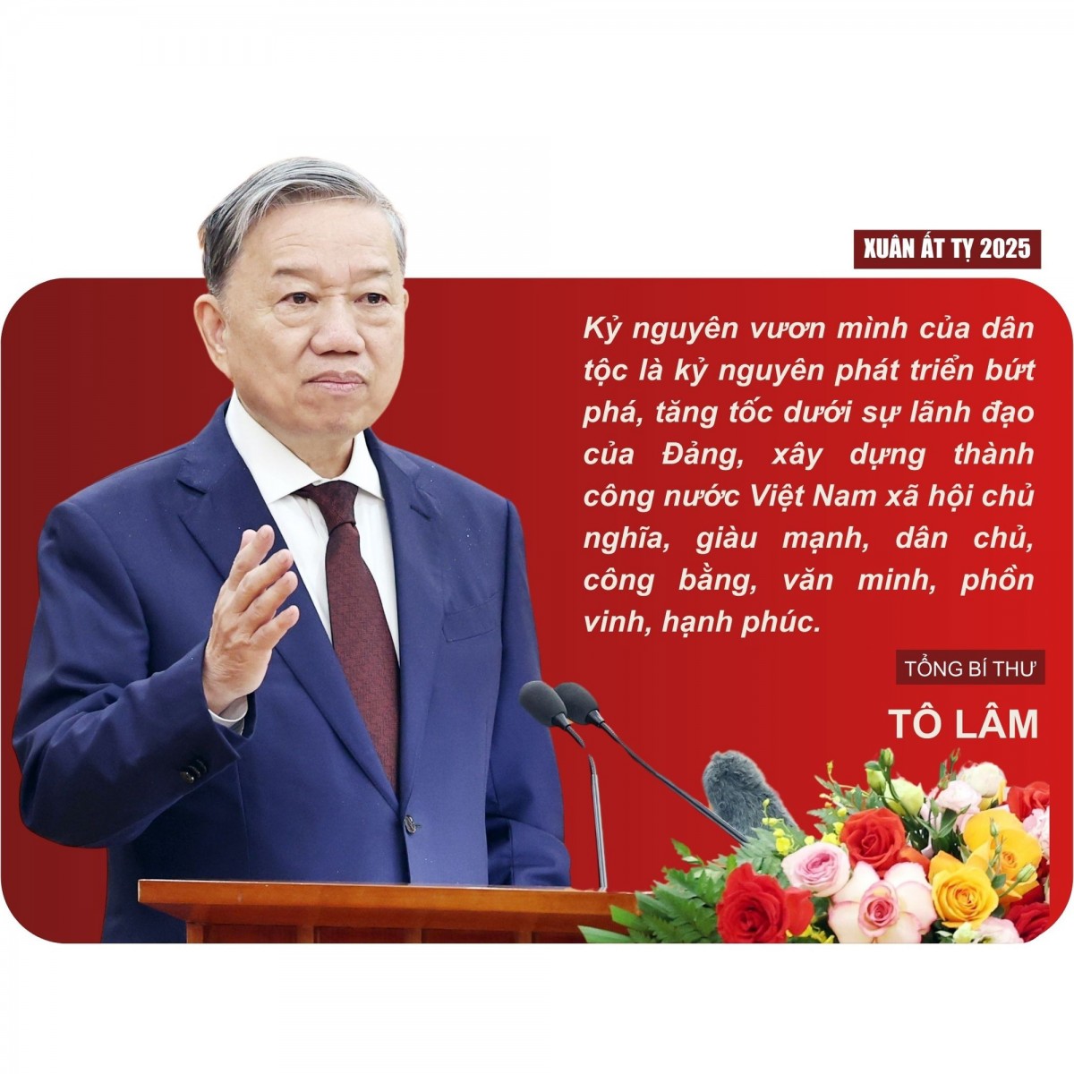 Tổng Bí thư Tô Lâm chỉ rõ, "từ nay đến năm 2030 là giai đoạn quan trọng nhất để xác lập trật tự thế giới mới, đây cũng là thời kỳ, cơ hội chiến lược, giai đoạn nước rút của cách mạng Việt Nam để đạt mục tiêu chiến lược 100 năm dưới sự lãnh đạo của Đảng, tạo tiền đề vững chắc đạt mục tiêu 100 năm thành lập nước. Điều quan trọng là chúng ta phát huy được tối đa sức mạnh đại đoàn kết toàn dân tộc, sự nỗ lực, quyết tâm cao của toàn Đảng, toàn dân, toàn quân và cả hệ thống chính trị cùng vào cuộc, hiện thực hóa khát vọng phát triển đất nước phồn vinh, hạnh phúc."