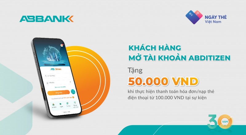 Đến với gian hàng ABBANK, các bạn trẻ sẽ được trải nghiệm ứng dụng Ngân hàng số AB Ditizen với đa dạng các tiện ích. Đặc biệt, với mỗi tài khoản thanh toán mở mới trên ứng dụng Ngân hàng số AB Ditizen qua luồng eKYC, khách hàng sẽ nhận được ưu đãi trị giá 50.000 VNĐ ngay trong tài khoản của mình khi thực hiện thành công giao dịch lần đầu tiên thanh toán hóa đơn, hoặc mua thẻ/nạp tiền điện thoại với số tiền tối thiểu từ 100.000 VNĐ.