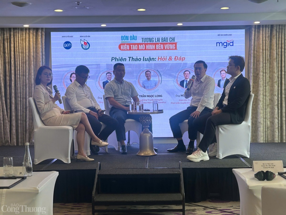 | Các diễn giả thảo luận về xu hướng báo chí hiện đại. Ảnh: NH |