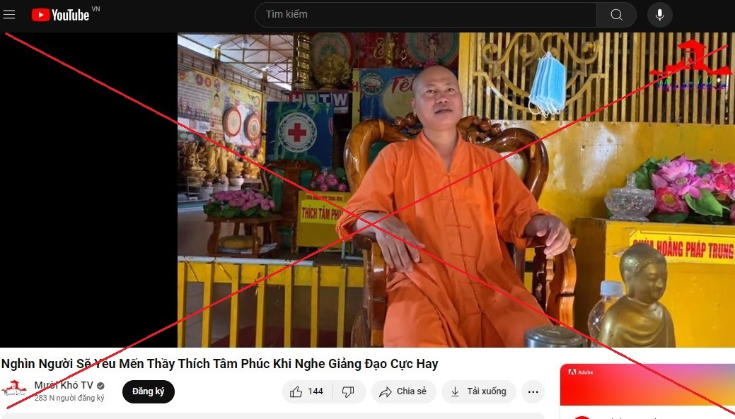 Hay nhiều kênh Youtube khác như: “Japan nguyễn vlogs”, “Nguyễn Minh TV”… còn đăng tải thông tin về ông Phúc với ngữ điệu bực tức, gọi Thượng tọa Thích Nhật Từ (trụ trì chùa Giác Ngộ) với ngôn từ chợ búa. Thậm chí, ông Phúc còn nói Thượng tọa Thích Nhật Từ là người “không có ăn học”, “dùng bằng cấp giả”, “lừa đảo nhiều người”... Trong khi đó, ông Phúc là “thầy rởm”, sử dụng chứng nhận Tăng Ni, bổ nhiệm trụ trì giả, mặc áo cử nhân chụp ảnh trước tấm biển đại học luật nhờ công nghệ… photoshop.