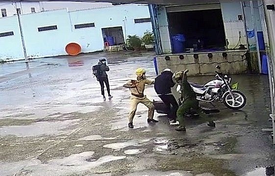 | Hình ảnh được cho là công an đánh người được camera an ninh ghi lại. Ảnh cắt từ clip |