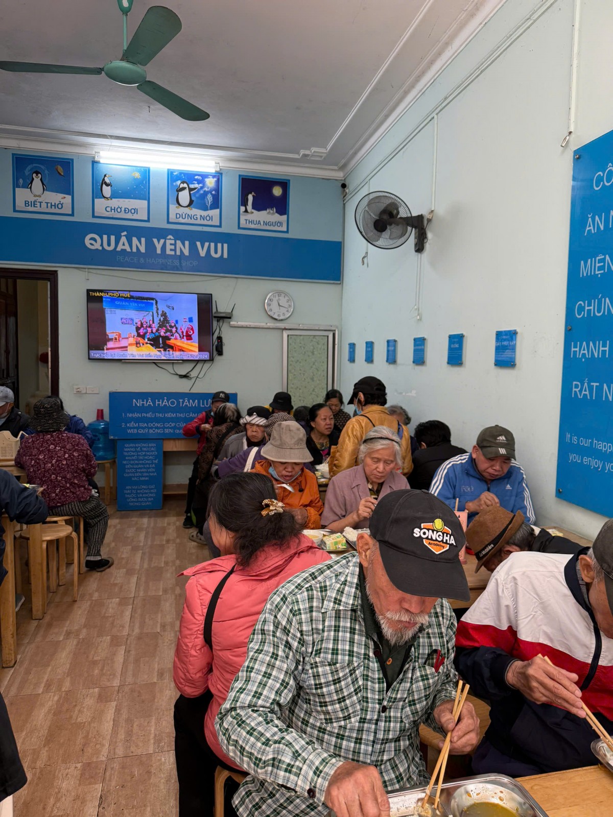 | Đúng như tên gọi, quán cơm Yên vui đã thực sự mang lại niềm vui, sự an ủi cho những người còn nhiều khó khăn trong cuộc sống. Nhìn những vị khách đặc biệt ăn ngon, ăn hết suất, ai cũng ấm lòng với những suất cơm nghĩa tình được trao đi. |