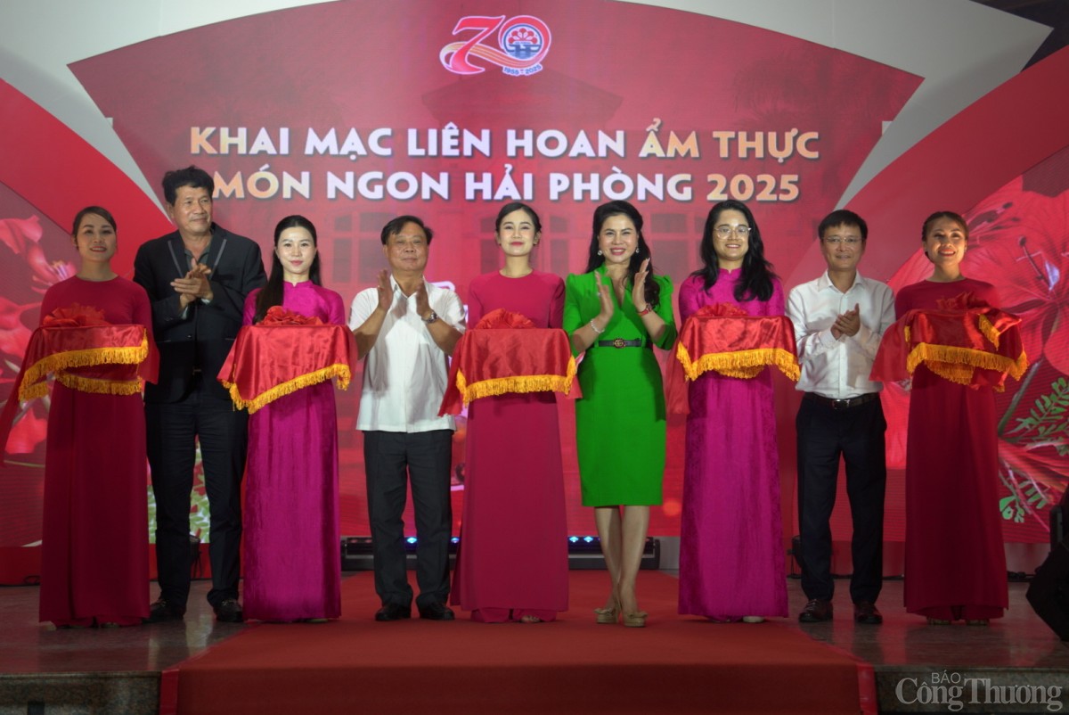 | Các đại biểu cắt băng khai mạc Liên hoan ẩm thực món ngon Hải Phòng 2025 |