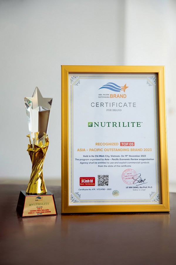 Giải thưởng Top 5 Thương hiệu Tiêu biểu châu Á - Thái Bình Dương 2023 nhằm tôn vinh những thương hiệu nổi bật trong khu vực, có đóng góp cho quyền lợi khách hàng, thúc đẩy kinh tế quốc gia trong giai đoạn hội nhập và phát triển. Giải thưởng đã được trao cho Nutrilite - nhãn hiệu thực phẩm bổ sung dinh dưỡng, bảo vệ sức khỏe và vitamin bán chạy số 1 thế giới, theo dữ liệu về quy mô thị trường toàn cầu năm 2022 của GlobalData.