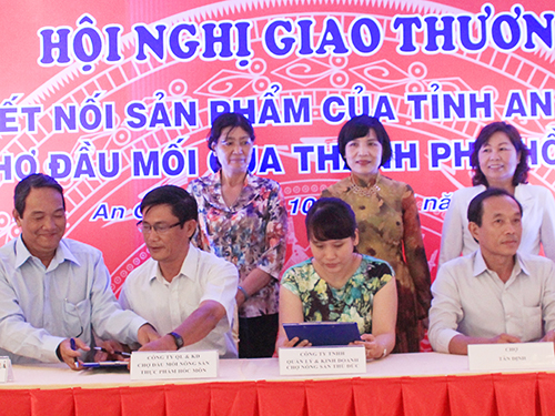 Để đáp ứng tốt về chất lượng sản phẩm, nhu cầu tiêu thụ của thị trường, Sở Công Thương An Giang đã tổ chức gắn kết doanh nghiệp với vùng nguyên liệu. Đáng chú ý là liên kết giữa UBND các huyện Châu Phú và Chợ Mới với Liên hiệp Hợp tác xã TP.Hồ Chí Minh (SaiGon Co.op) về tiêu thụ rau màu, cây ăn trái và đầu tư nhà màng, nhà lưới; kết nối giữa Công ty Cổ phần Nông nghiệp U&I (Unifarm) tỉnh Bình Dương với nông dân huyện Chợ Mới về xây dựng vùng nguyên liệu và tiêu thụ sản phẩm chuối Philippines và dưa lưới...
