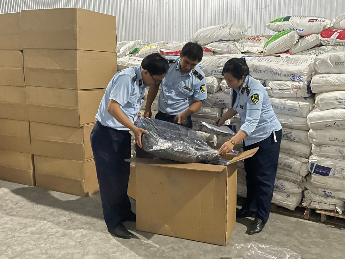 Qua khám phương tiện, Đoàn kiểm tra nghi vấn hàng hóa là Phôi nhựa PET, loại 30kg/bao, số lượng 1,5 tấn, không phù hợp với hóa đơn GTGT được xuất trình tại thời điểm kiểm tra. Đoàn kiểm tra tạm giữ lô hàng để xác minh làm rõ và xử lý theo quy định của pháp luật. Trị giá lô hàng trên theo hóa đơn là hơn 45 triệu đồng.