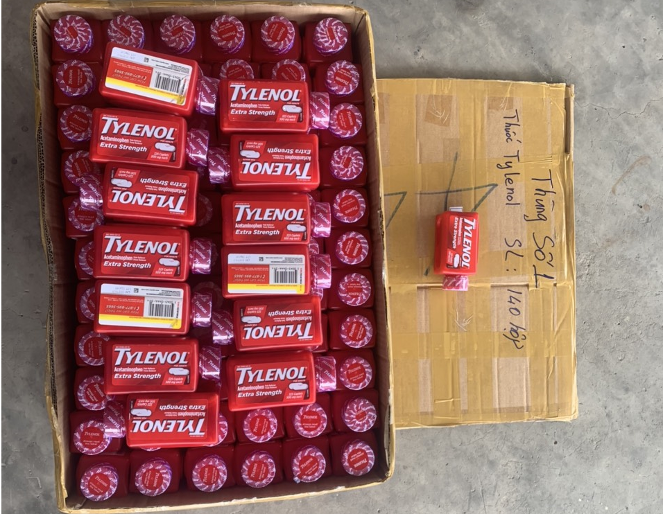 Các sản phẩm bao gồm: 849 chai thuốc, thực phẩm chức năng bổ sung vitamin và khoáng chất do Australia, Anh, Ấn Độ sản xuất; 1.064 chiếc quần Kaki xuất xứ Thái Lan, tất cả không hóa đơn chứng từ, không có nhãn phụ bằng tiếng Việt Nam, trị giá gần 395 triệu đồng. Ngoài ra còn có 325 viên/hộp thuốc Tylenol Acetaminophen Extra Strength, loại 500mg, xuất xứ Ấn Độ.