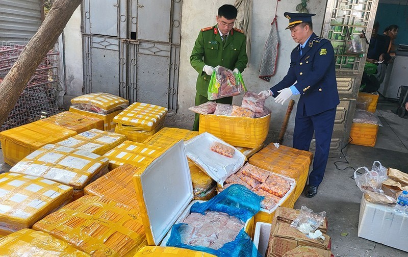 Mới đây, ngày 7/1, Công an xã Xuân Canh (huyện Đông Anh, TP. Hà Nội) phát hiện và tạm giữ 1,2 tấn nội tại động vật (tràng lợn) không rõ nguồn gốc xuất xứ, được đựng trong các thùng xốp có chữ nước ngoài. Số hàng hóa này đều không có hóa đơn chứng từ chứng minh nguồn gốc xuất xứ, với tổng khối lượng cả trên xe và trong kho là 1.246kg.