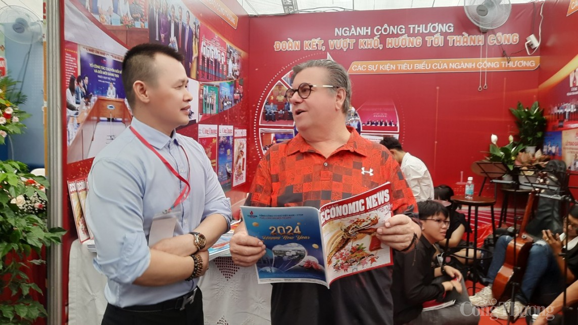 Không những thu hút được các độc giả trong nước, gian trưng bày của Báo Công Thương còn được sự quan tâm lớn của một số độc giả nước ngoài. Những độc giả này rất ấn tượng khi cầm trên tay ấn phẩm VietNam Economic News của Báo Công Thương.