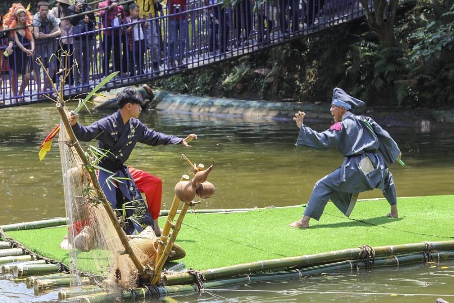 | Các võ sư múa quyền thu hút du khách tham quan thưởng ngoạn |