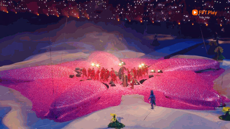 | Hình ảnh một bông hoa màu hồng năm cánh trên sân Lusail. (Ảnh chụp màn hình) |