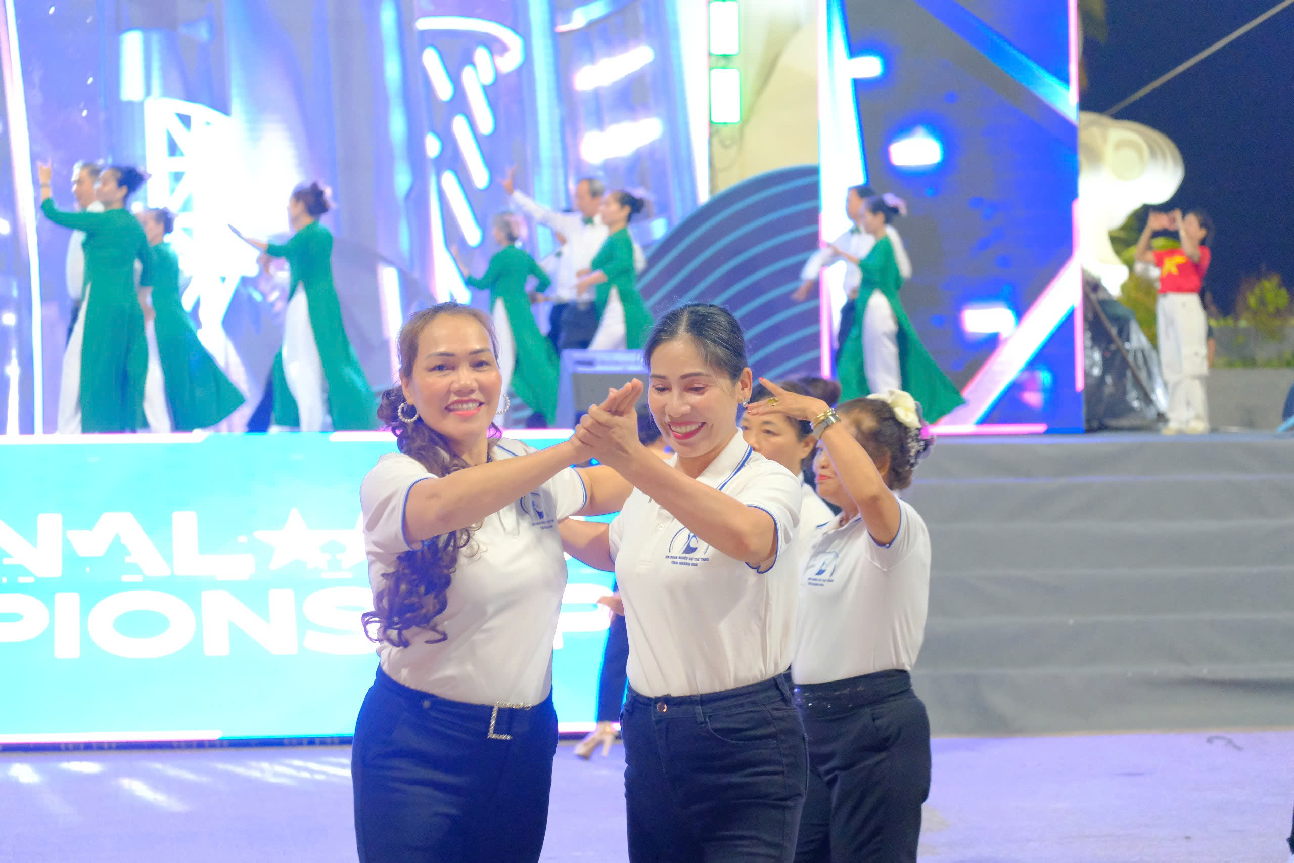 Tiết mục đồng diễn "chachacha trên hành tinh xanh" tại chương trình. Ảnh: Lê Sơn