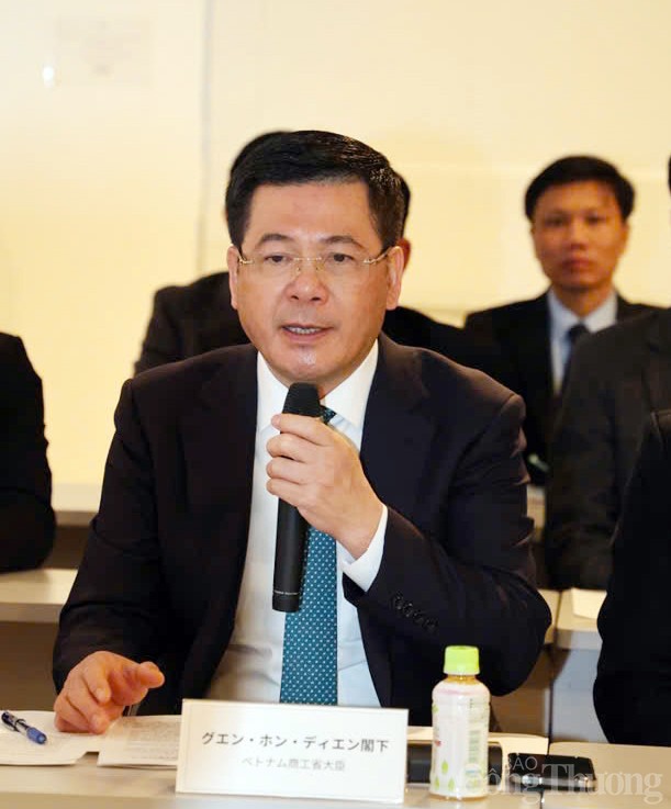 | Bộ trưởng Nguyễn Hồng Diên cùng Đoàn công tác Bộ Công Thương đã có buổi làm việc với nhóm doanh nghiệp, trường đại học của Nhật Bản để trao đổi về việc thúc đẩy hợp tác phát triển điện hạt nhân giữa Việt Nam - Nhật Bản |