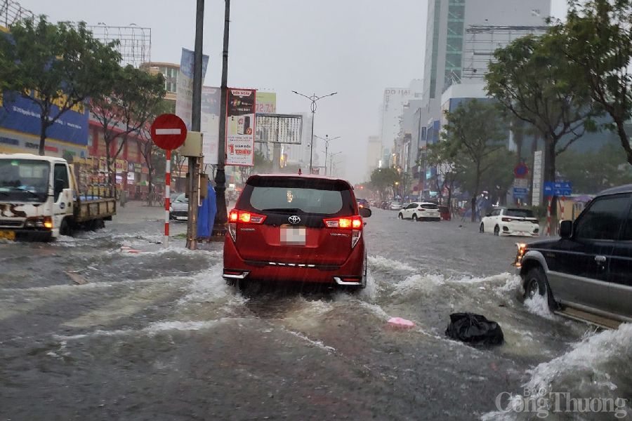 Ảnh hưởng từ hoàn lưu cơn bão số 5 (bão Sonca), nhiều tuyến đường trên địa bàn thành phố Đà Nẵng ngập sâu do mưa lớn kéo dài gây tắc nghẽn giao thông cục bộ.