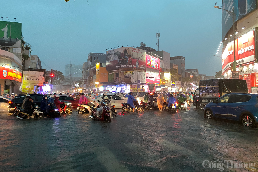 | Theo ghi nhận, các tuyến đường lớn trên địa bàn thành phố như đường Nguyễn Văn Linh, đường 3 tháng 2, đường Hàm Nghi, đường Đống Đa… đều trong tình trạng ngập, nhiều nơi ngập lên tới khoảng 200mm-300mm nước. |